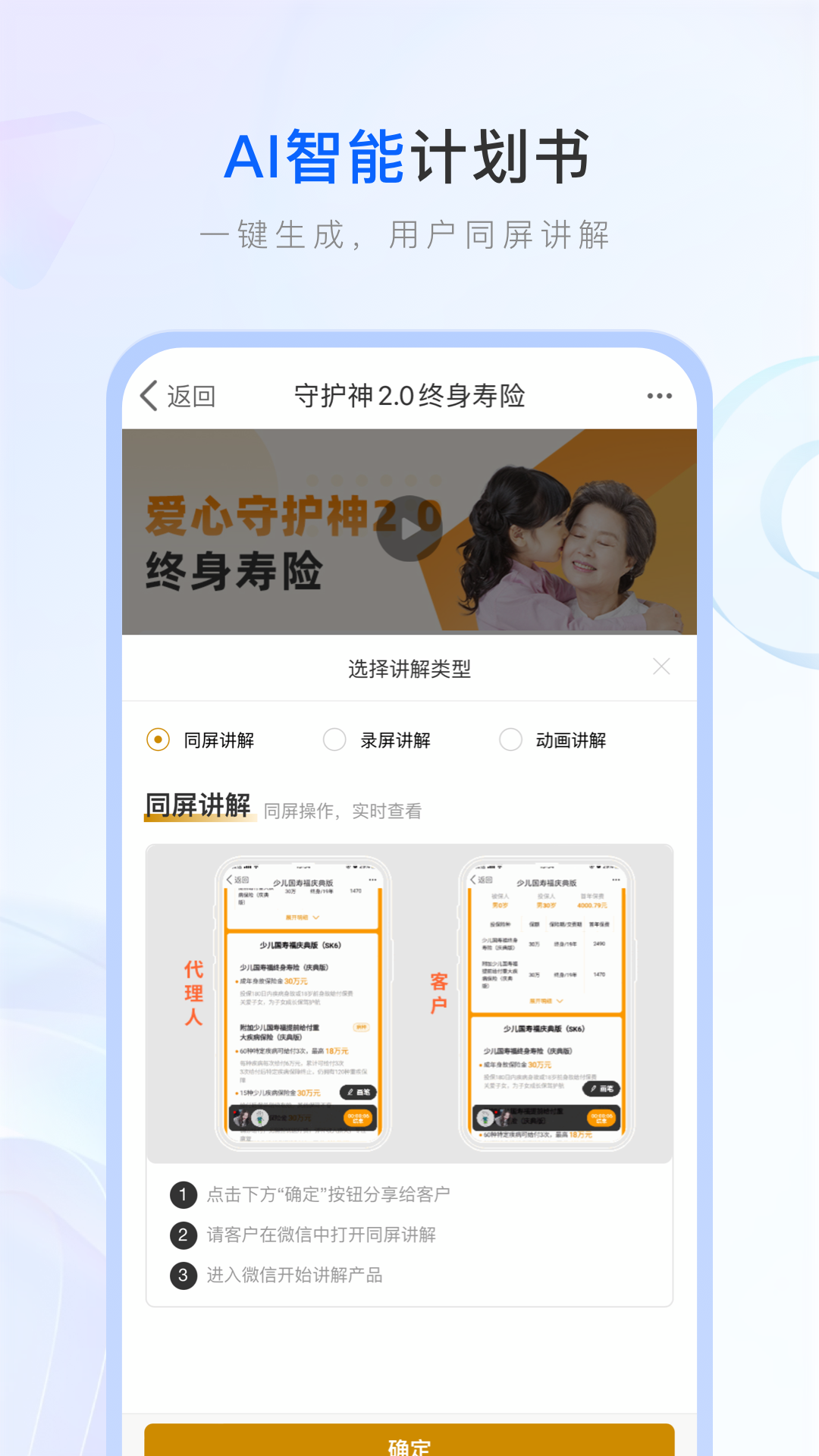 丰富全面的保险产品,随时随地计划书制作,更新增30款保险理念,40款产品特色,更直观的利益演示,都随个人名片转发,看得懂,能理解,展业更无忧!