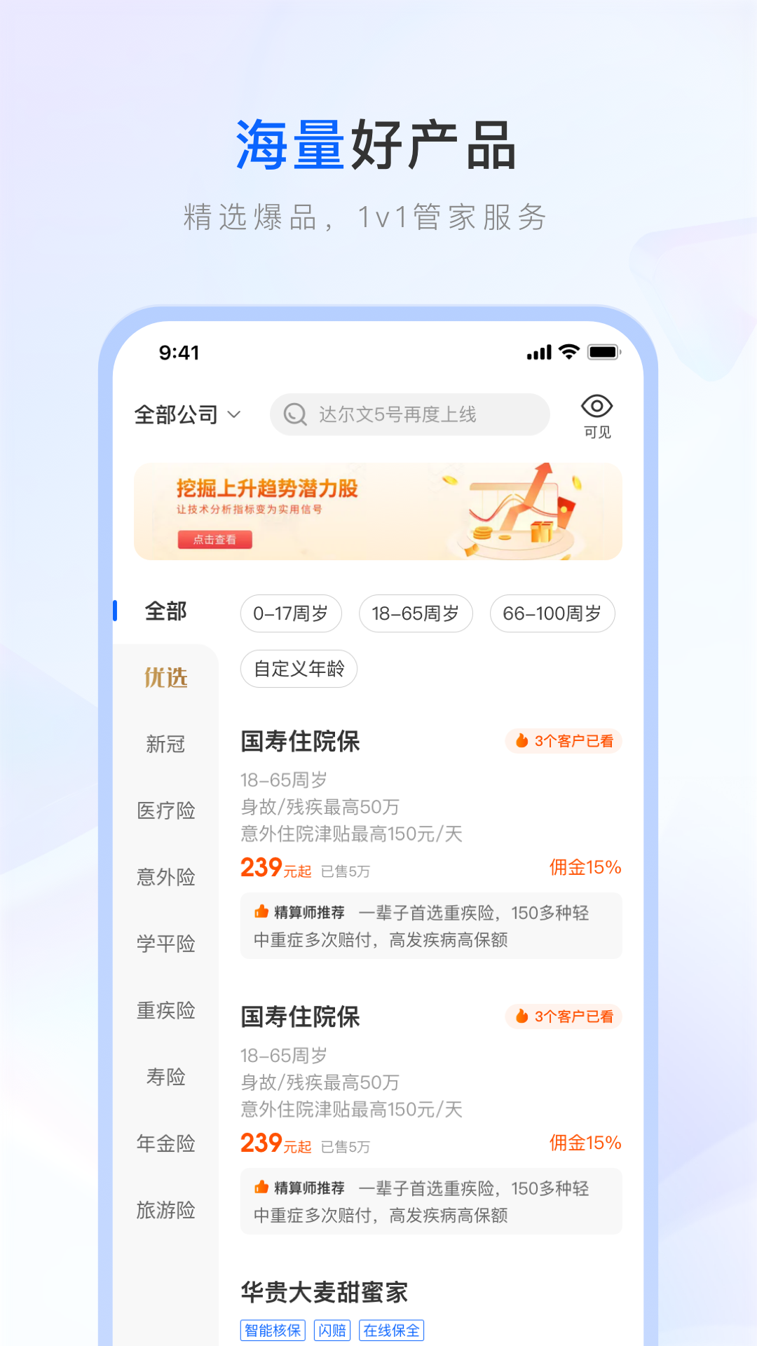 精选热销保险产品,展业、赚钱皆有保证,还有不菲的额外推广奖励!