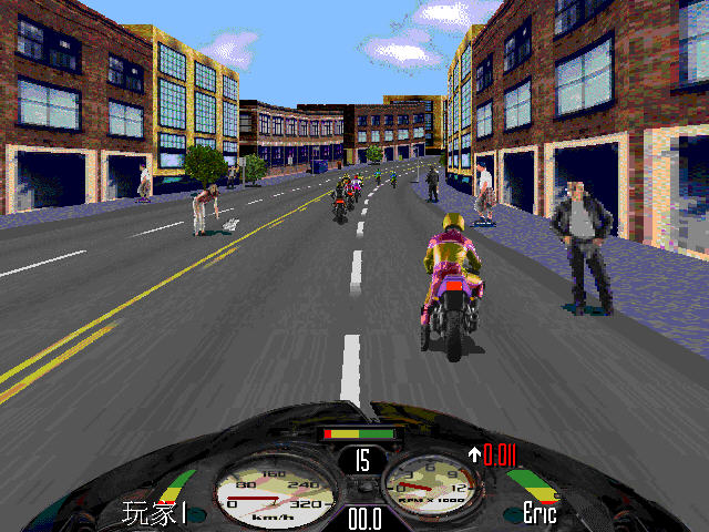 3、比赛进行期间,按 V 键可查看游戏版本;按 F10 为切换/显示/隐藏摩托车的仪表面板;小键盘的 + - 键为改变游戏背景的贴图颜色。