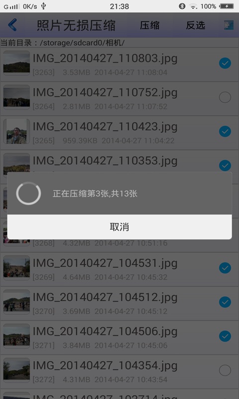 照片无损压缩是一个简单易用的图片压缩工具。这款软件可以将一个6MB的照片可以无损(不改变像素)压缩到3MB,甚至可以压缩到2MB以下,马上释放你的手机空间!