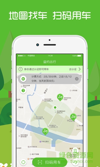 益约出行手机版是一款共享电单车软件,用户可以通过软件直接扫描车身二维码,直接开锁骑走,随走随停,让出行更加的方便,使用简单又方便,为用户的出行提供更大的便利,需要的用户就来绿色资源网下载吧!