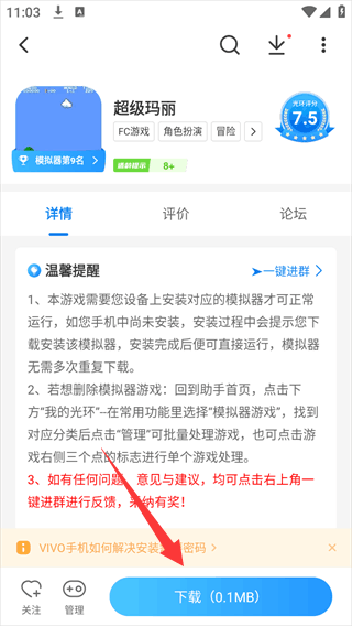 2、在此界面中,有游戏的相关注意事项,玩家需要仔细阅读,对打开游戏有所帮助,接着找到并点击下方的下载按钮,点击下载游戏;