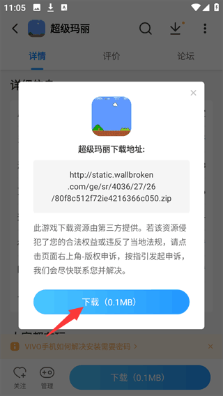 3、接着屏幕会出现一个游戏下载地址连接,我们需要再次点击下载按键;