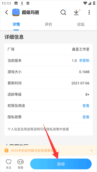 5、安装成功后就会进入此界面,如下图所示,最后我们直接点击启动按键即可正式进入游戏。