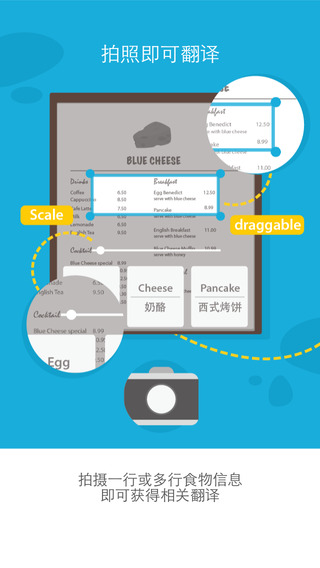蓝芝士是一款专门翻译菜单的应用,无论多么晦涩难懂的用词,无论多么高端少见的食材,它通通都能看,让你在国外也能吃尽美味!
