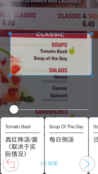 2.菜单翻译超方便,轻轻一拍多行食物描述即刻翻译