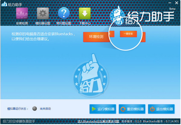 给力助手自动检测系统环境,帮你一键安装BlueStacks虚拟机,能否安装让你先知道。