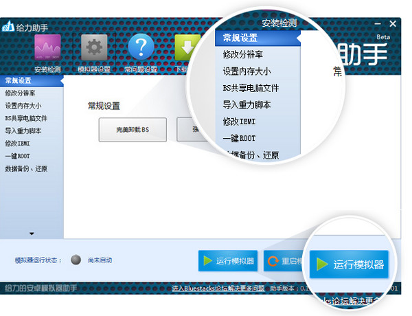 6、新增一键Root 详细>>只要点一下,你就可以获得BlueStacks模拟器的超级权限,使用给力助手就是这么简单