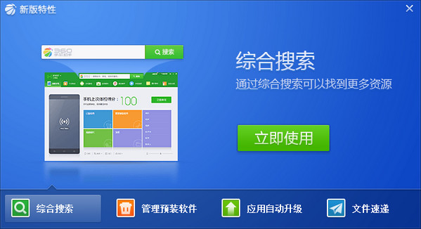 360手机助手是360推出的手机助手,拥有海量软件和游戏轻松下载,炫彩主题壁纸随心点选,您可以通过它轻松下载、安装、管理手机资源,还可助您用最省流量、最快捷方便、最安全的方式获取网络资源,所有信息资源全部经过360安全检测中心的审核认证,绿色无毒,安全无忧。