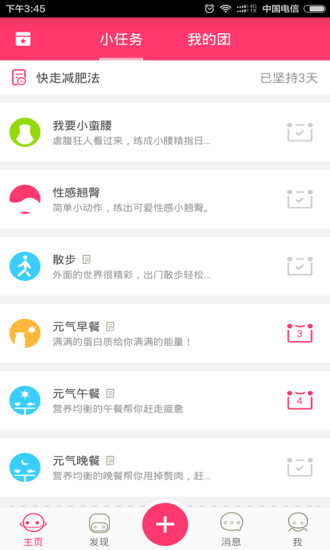 坚持不下去怎么办?肉肉帮你组团减肥,大家互相监督,互相鼓励,更有爱心满满的团长时刻 “敲打”,让减肥之路不再孤单。