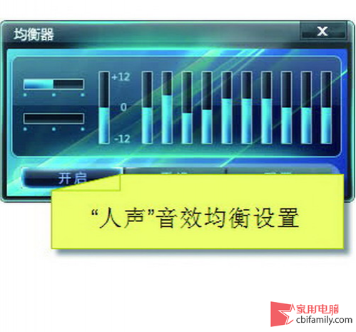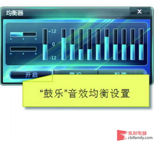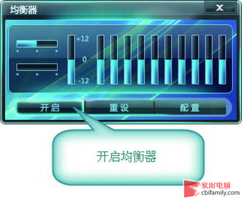 默认状态下,均衡器可能是关闭的。这时音乐以默认的状态进行播放,声音没有经过渲染,各个频段的音效听上去比较平淡。开启EQ的方法很简单,点击均衡器界面上的“开启”按钮即可。