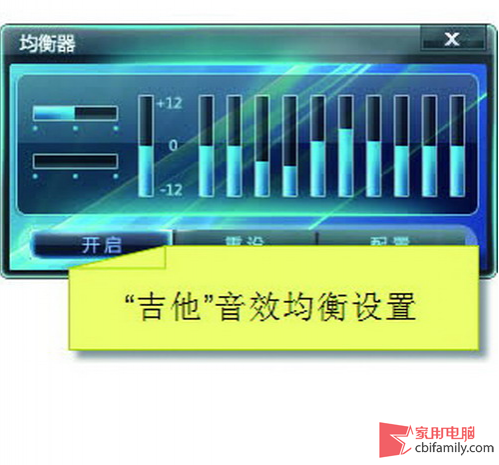 如果你喜欢听“吉他”等音乐,为了提高吉他的表现力,可以把300-600Hz之间的增益适当降低到-4dB左右,关键是把2-3KHz的增益提高到+2db到+4dB。这样,吉他的音效听上去会感觉比较明亮。