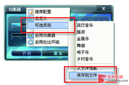 以上简单举例讲了几种音效的设置,为了避免每次都要手动设置,我们可以把调整好的均衡值保存下来,以备今后使用。