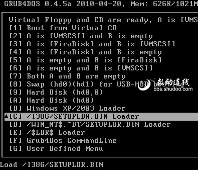 选择[C] /I386/setupldr.bin loader ,开始安装,接下来的安装界面就很熟悉了,谁都会啦,看准了喔,别把错安装在U盘上了,U盘的容量跟硬盘的容量还是不一样的吧?