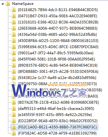 接下来,一项一项的删除NameSpace里面的项,每删除一个,前先记好这一项的名字,删除一项后,在桌面上刷新一下。假如删除{3D3DBDD2- DD4D-B157-4264-0B0D4DD6BD45}这一项后,桌面上的那几个图标没有了的话,那就用记事本编辑刚才导出的那个REG文件,删掉里面的