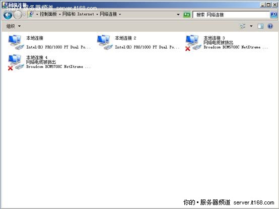 将网卡安装好后,启动操作系统,Windows Server 2008 R2此时已经识别出了两块网卡,并且已经通过DHCP自动获取到了IP地址(图3)