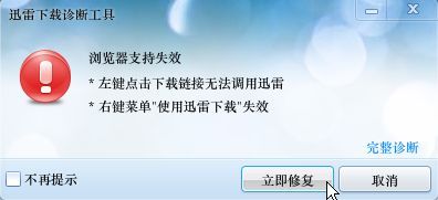 如图1所示,当迅雷7启动时,如果发现有问题,则会提示我们进行修复。我们可以直接单击“立即修复”按钮即可修复。