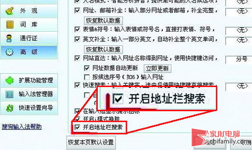 要解决其实并不难,打开搜狗输入法的设置,选择高级选项,然后将下拉条拉至最底端,把开启地址栏搜索的勾去掉,点确定即可。然后退出,再使用360将搜狗搜索插件清除后重启即可。