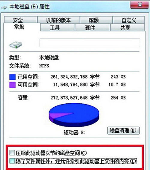 鼠标右键单击硬盘盘符,在菜单上选择“属性”,在弹出的界面上,将“压缩此驱动器以节约磁盘空间”和“除了文件属性外,还允许索引此驱动器上文件的内容”这两项前面的小钩去掉。之后点击确定退出。不过这样的操作建议仅针对非系统盘,比如我们用来存储电影或音乐的D,E,F盘等,系统盘还是保留原样比较好。