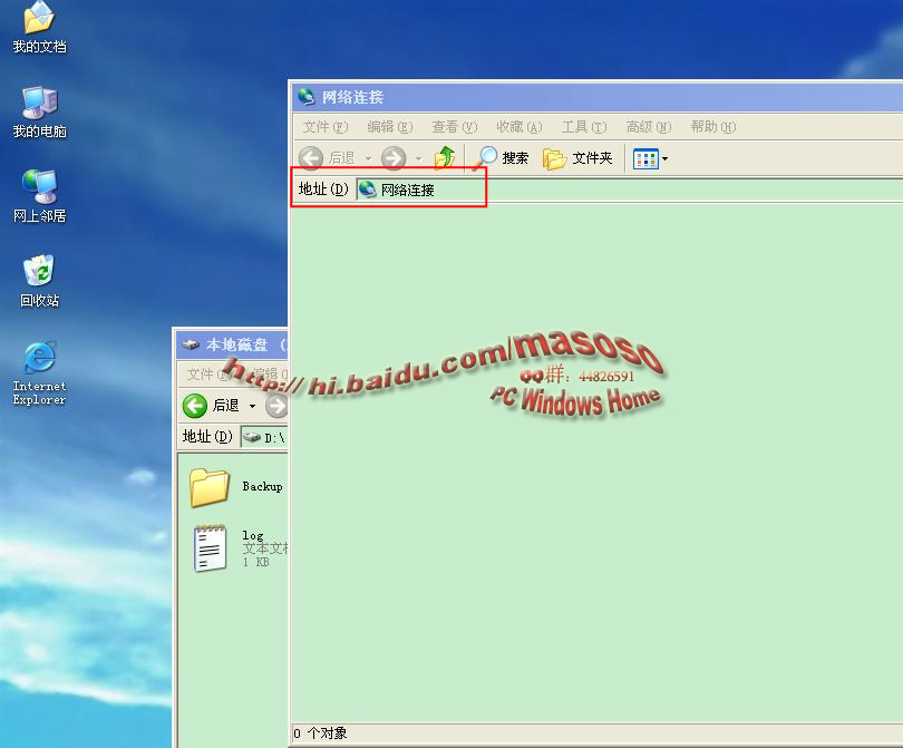 3.网络连接,显示为一片空白,本地连接、宽带连接不知道死哪去了。