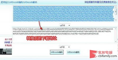 Step 02复制这个参数后面的数据,如图红色部分,不包括符号,然后进入http://tool.chinaz.com/Tools/URLEncode.aspx,在中间的输入框把之前复制的数据粘贴进去,然后点击“UrlDecode解码”即可解析出真实的下载地址。