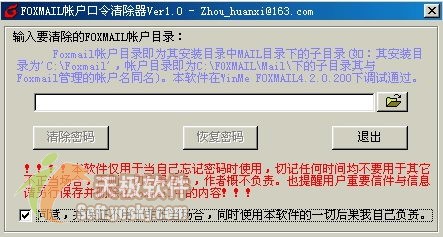 如果你不喜欢自己动手,还可以使用专用的“Foxmail帐户口令清除器”帮你解除Foxmail的账户口令,下载后运行“Foxmail帐户口令清除器”,单击“打开”按钮选择要清除口令的Foxmail帐户目录(图3),然后点击“清除密码”按钮即可。打开Foxmail,可以直接进入忘记口令的账户了!(点这里下载)