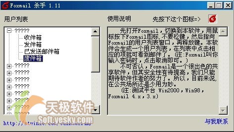 后记:在忘记了自己的Foxmail口令后不妨试试上面的应急方法,非常管用。如果你在公用电脑上使用Foxmail,担心别人利用这些方法来查看你的邮件,可以把你的账户对应的文件夹彻底删除(该文件夹在Foxmail\Mail下),这样就没有任何安全隐患了。