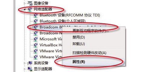 以Windows 7为例子,在新笔记本上右键点击开始菜单中的“计算机”,选择管理。在管理界面中进入设备管理器,在设备管理器的网络适配器选项中,找到无线网卡。然后点击右键选择“属性”。