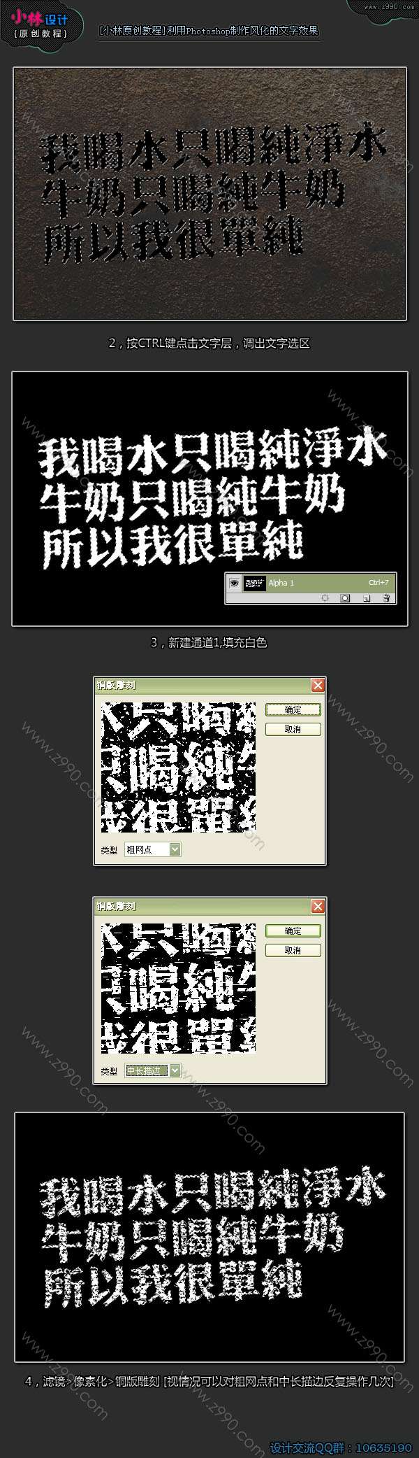 4,滤镜>像素化>铜版雕刻; (视情况可以对粗网点和中长描边反复操作几次)(#分页#)