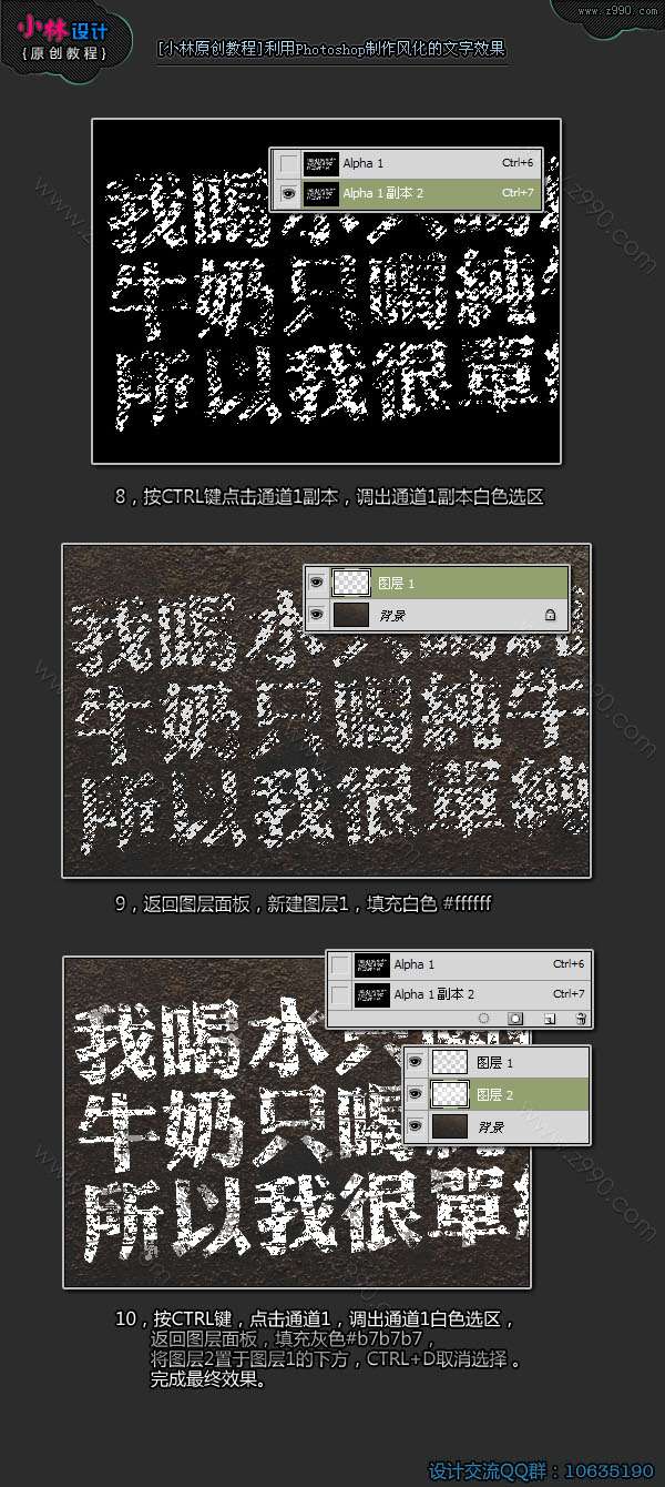 10,按CTRL键,点击通道1,调出通道1白色选区,返回图层面板,新建图层2,填充灰色 #B7B7B7,将图层2置于图层1下面,CTRL+D取消选择。完成最终效果。