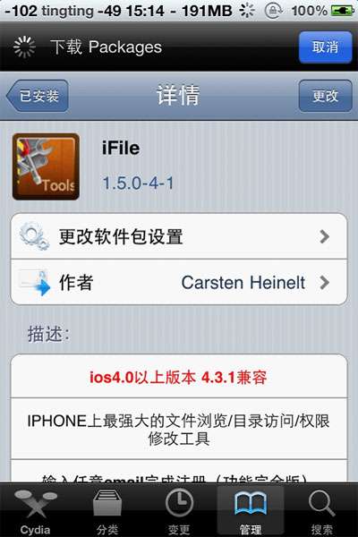 安装iFile(我的手机系统是4.33的 安装的iFile版本是1.5.0-4-1)