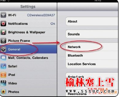 ad中进入设置菜单,可以点击主页Dock上的图标进入。在设置菜单中选择“通用(General)”中的“网络(Network)”。有的同学使用的是英文版(例如我),这里也一并给出英文。