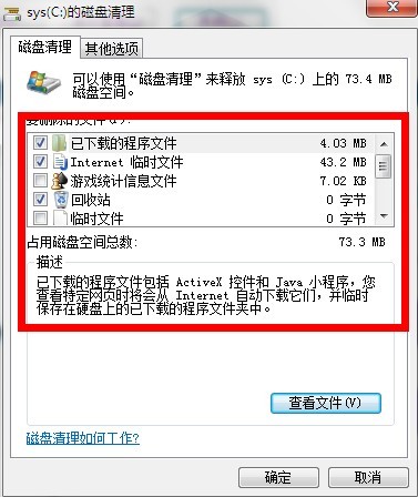 - 扫描完毕后,会弹出对话框,显示哪些文件是多余的可以删除的,在这里win7很人性化,可以自己选择性的删除。