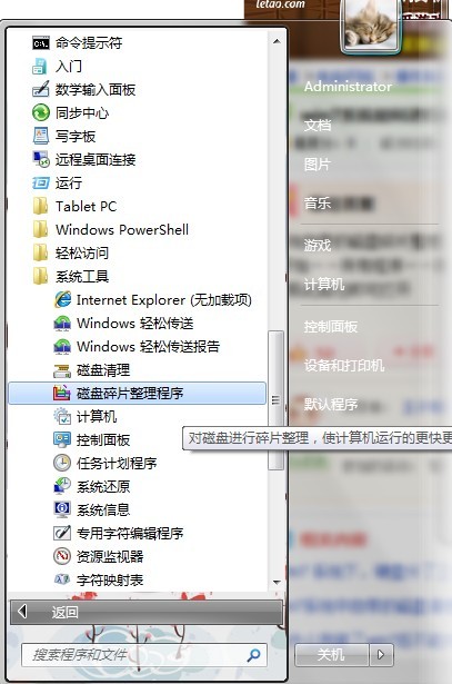 - 开点开始-所有程序-附件-系统工具-磁盘碎片整理程序