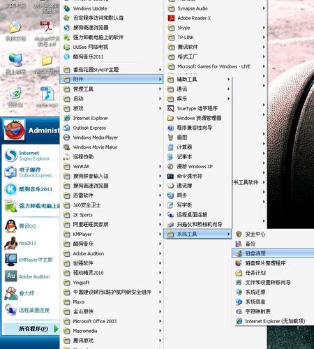 - 点击开始-所有程序-附件-系统工具--磁盘清理。