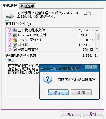 - 清理完毕后,会弹出对话框让我们确定。我们可以看到,已用空间减少了,腾出了一些空间了,这样可以使我们的计算机运行的更快啦。