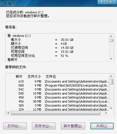 - 查看分析报告,不喜欢的话也可以跳过这步,直接碎片整理。