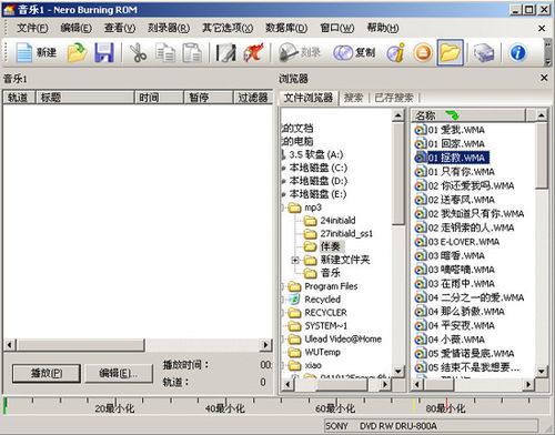 刚把自己要刻录的音乐一首一首拖到音乐区域后会自动排序,如图