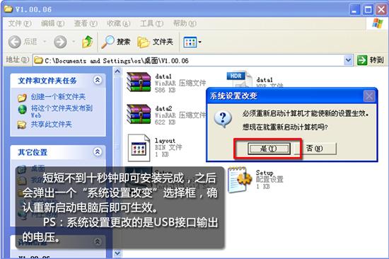 安装完会提示系统修改,点击确认重启电脑。