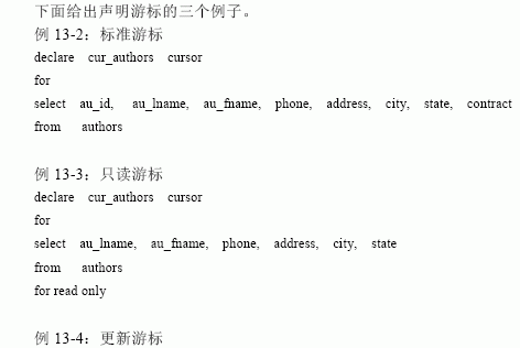 是定义结果集的SELECT 语句。应该注意的是,在游标中不能使用COMPUTE、COMPU- TE BY、 FOR BROWSE、 INTO 语句。 - READ ONLY