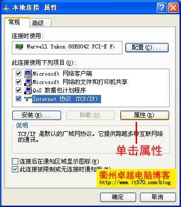选择"Internet 协议(TCP/IP)"--"属性" 。