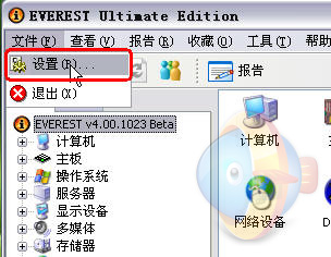 2、下载安装并启动Everest软件后,打开Everest的主窗口,在 顶部主菜单的 “文件” 菜单中点击 “设置”(如图1) 会打开设置窗口