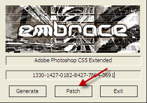 5、要输入序列号,呵呵,那就给一个吧。注意,在这里大家用注册机弄一个注册码出来后,不要关了注册机,不要再点generate按钮,也就是保证上面的注册码是你使用的那个。等安装完成后,点击patch来修改hosts文件,防止Adobe Photoshop CS5升级使注册码失效。切记!!!大部分网友注册码失效就是这里错了。
