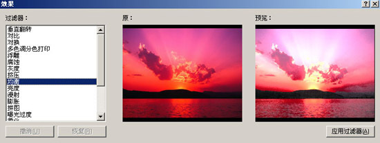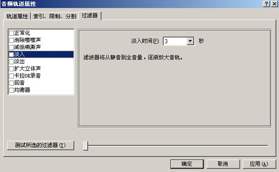 “过滤器”界面中可以对所选定的音乐加入一些音频特效。