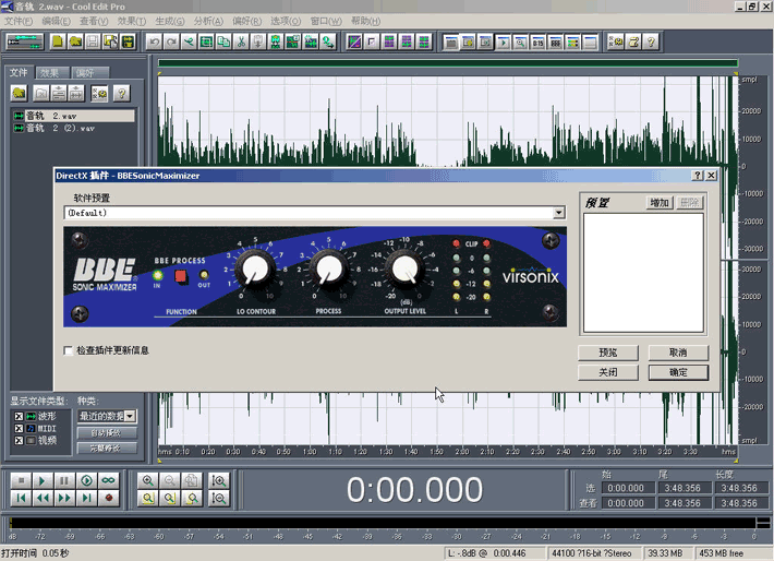 1.点击"效果--DirectX--BBE Sonic Maximizer"打开BBE高音激励器(图16)。