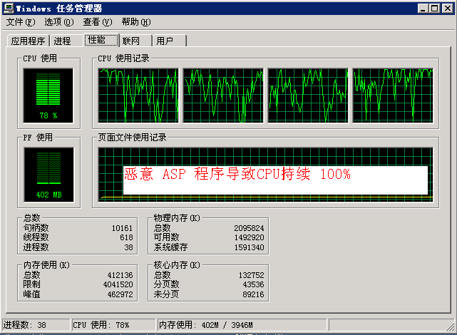 不管你是双CPU还是4核CPU ,只需要几行ASP代码,立刻100%