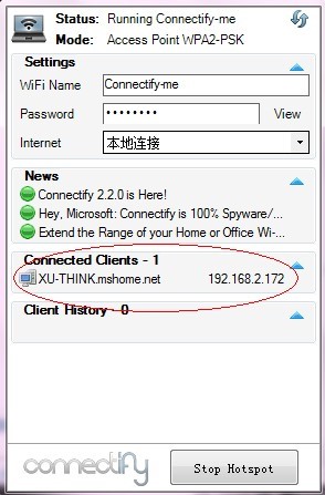 八、如果你不用了,可以点击stop hotspot按钮就停止发射wifi信号。