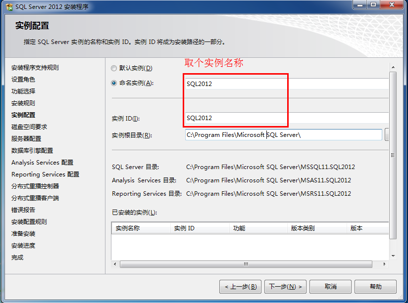8)、取个实例名,这次看起来好多啦,下方可以看到本机安装过的那些实例。