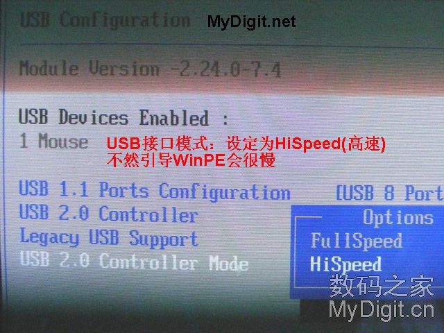 4、USB接口的速度,设为HiSpeed USB2.0高速,这样启动的速度会快很多