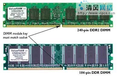 DDR2内存单面金手指120个(双面240个),缺口左边为64个针脚,缺口右边为56个针脚;